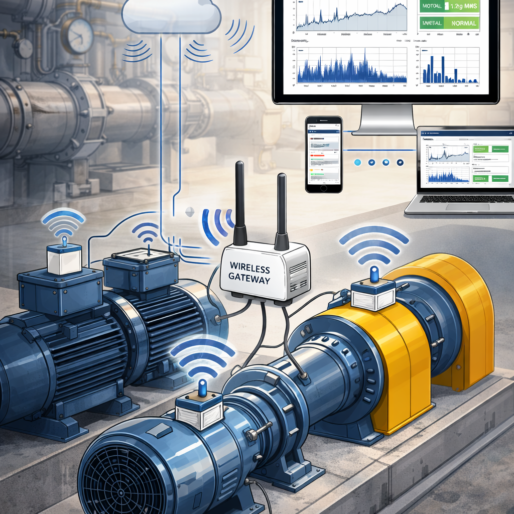Continuous asset monitoring using wireless sensors to track equipment condition in real time and reduce manual inspection efforts.